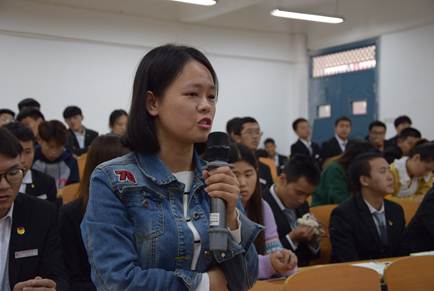 室内设计1801班团干部商一丹接着就“如何在团员青年学生中围绕‘四进四信’,不断改进团学工作、切实加强对团员青年的理想信念教育”等话题向周院长进行了提问。周院长说:理想信念是人们对未来的向往和追求,一旦形成,就有一定的稳定性、就会成为支配人们活动的精神支柱和精神动力。如何改进团学工作,周院长认为:一是要坚持以理想信念教育为核心,扎实做好团员青年的思想政治工作,把“进支部、进社团、进网络、进团课”的“四进”与牢固树立对党的科学理论的信仰,坚定走中国特色社会主义道路实现“中国梦”的信念,增强对党和政府的信任,增进对以习近平同志为总书记的党中央的信赖的“四信”有机结合起来,不断促进青年学生的健康成长。二是要围绕坚定跟党走,强化社会主义核心价值观教育,积极开展学生喜欢参加的社团活动,让学生在活动中长见识、增才干、有更多的获得感。三是积极利用好网络平台,净化网络环境,让学生在网络时代的万物互联互通过程中能更好地融入社会,融入学校,融入集体,学会成长。四是加强文化育人、环境育人工作,把学生思想政治工作进教室、进寝室、进支部、进班级等工作做得更加有特色、有新意、有活力、有成效。