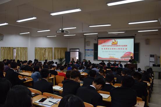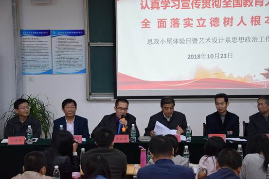 (艺术设计系阳光报道)艺术设计系为了更好地学习、宣传贯彻全国教育大会精神,根据学院的总体部署开展了系列活动,围绕“认真学习宣传贯彻全国教育大会精神全面落实立德树人根本任务,切实加强思想政治工作”的主题,10月23日在艺术大楼一号多媒体教室举办了系列活动的学习交流会,学院党委副书记、院长周金堂教授、研究员,副院长章志伟、宣传部长李江波博士、学工处长万联耀、院团委书记李猛、艺术设计系的党政负责同志、部分老师、全体党员、预备党员和入党积极分子,团学干部以及学生代表共计200余人参加了学习交流会。