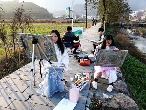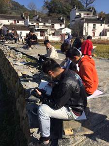 11月24日至30日,艺术设计系2018级各专业班学生和2017级美术班学生共计三百余人,在系负责人赵俊华教授的带领下,赴婺源沱川一甲美术写生基地,开始了为期七天的艺术写生活动。虽已是初冬时节,但在这里,映入大家眼帘是一派浓浓的秋意。加之天公作美,给了我们连续一周的好天气。