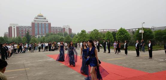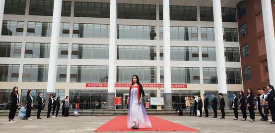 本网讯 艺术设计系 赵俊华 报道 迎祖国七十华诞,展职教时代风采。根据学院职业教育活动周安排,为展示艺术设计系服装与服饰专业教学成果,5月14日下午5时18分,在学院图书馆东门前广场,艺术设计系服装设计暨模特表演活动正式拉开了帷幕。学院周金堂院长,罗青平副院长、章志伟副院长莅临了活动现场。