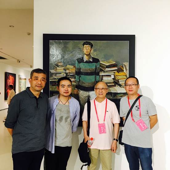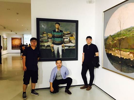 与中国青年艺术家,九零创作画社社长白固、九零创作画社艺委会委员宗建成在画前合影