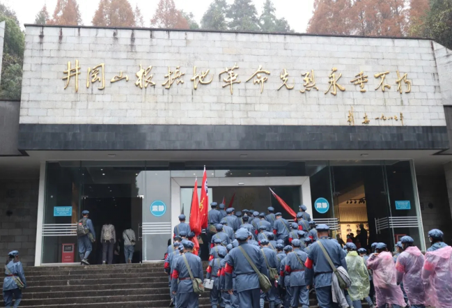 清晨伴随着大雾朦胧的天气同学们穿戴整齐踏上了今天的井冈山行程。几分钟车程后我们到了井冈山烈士纪念馆。我们排列整齐跟随着排头慢慢进入大厅,放下花圈后领导整理花圈挽联,气氛庄严而肃穆。大家深深的三鞠躬对烈士先辈们表示最高的崇敬。默哀一分钟后大家跟随导游到了二楼,一个一个革命先辈名字让我对井冈山革命圣地更加崇敬。对老一辈革命家更加崇拜和缅怀。