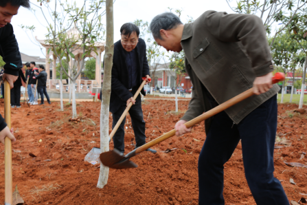 艺术设计学院邱艳芬 报道 春和景明,万物萌动,正是植树播绿好时节。3月12日上午,在第43个植树节到来之际,校党委书记、督导专员卢仁顺,校长周金堂,校领导彭祖雄、喻子显、聂剑、罗青平、涂庆华、黄恩平等以及师生代表参加义务植树活动。我院在党委书记、院长肖鸥鸣教授的带领下,由6名师生组成植树小队,合力种下多棵橘树、枇杷树和桂花树,为构建文明美丽校园描绘一抹抹新绿。