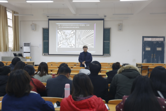 艺术设计系为加强系部教师之间的相互学习,提高教师的教学水平,于11月21日下午在艺术楼113教室进行了一场公开教学课。公开课由基础教研室教师王小彪老师主讲,主讲内容为《三大构成》课程中的“平面构成——发散构成”。王小彪老师拥有十余年的教学经验,其备课认真,资料翔实,教学程序规范,PPT图片丰富多彩,声音宏亮,突出重点,化解难点,学生能较好地吸收新课知识点。